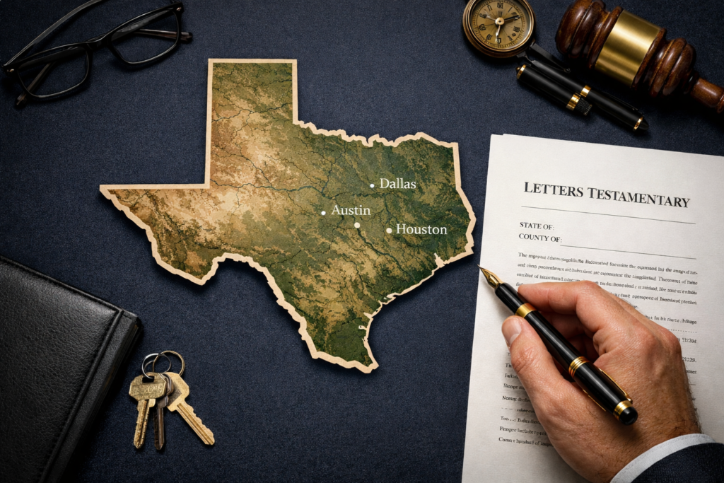 To sell probate property in Texas, executors need court-issued Letters Testamentary or Letters of Administration to establish authority. Additional required documents include the deceased’s death certificate, the original will (if one exists), a court-ordered inventory and appraisement, property survey, and Texas seller’s disclosure or exemption documentation. Dependent administration requires additional court approval orders before listing or accepting offers.